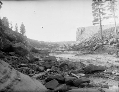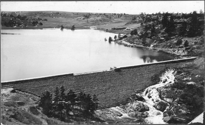 Who: The Castlewood Dam was built in 1889. It had stood for 43 years prior to its demise. The Dam served to irrigate the desert like landscape of typically dry Douglas County. The Dam was started by the Denver Water Storage Company. a group comprised of eastern investors and local land owners. The reservoir, or lake, had a capacity of 5,300 acre feet of water. The Lake was fed by Cherry Creek and the numerous springs that fed into the Creek. Construction took about 11 months. 85 men worked at building the dam, some 250 more (and 180 teams of horses) dug the Arapahoe ditch running down the canyon to smaller storage reservoirs and irrigation canals. In 1901, the Denver Water Storage Company went bankrupt. The dam went to the largest creditor ($185,000) the Knickerbocker Investment Company of New York, which soon sold it for $8,000 to Seth H. Butler of Middletown, Connecticut. Nettie Driskall was the telephone operator who alerted Denver of the impending doom. Often called Lake Louisa. Louisa Roracher Engel, wife of homesteader George Engel, cooked, sewed, and mended for the dam workers.