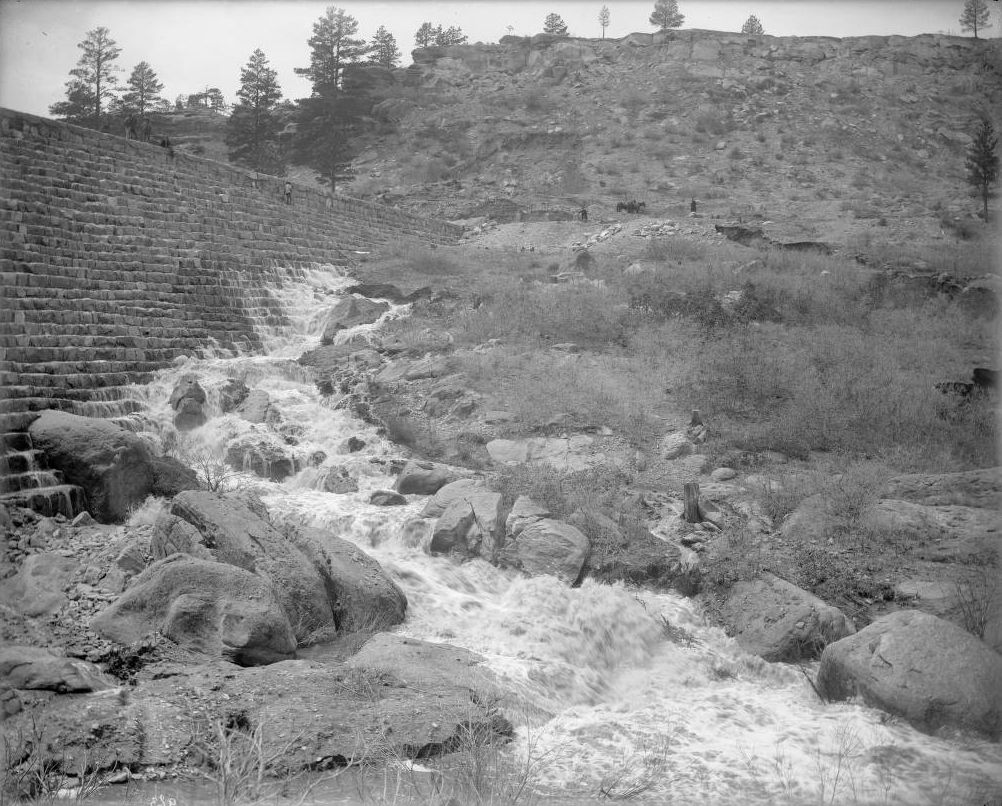 Significance: The Dam was constructed as an early attempt to commercialize Cherry Creek. Construction was typical of the time. Built out of the materials available in the area, it consisted of a rock rubble core faced with quarried stone set in cement. Built on a type of brittle sandstone formation, the additional pressure of the water caused constant shifting of the substrata. This is what caused the early cracks. Communication of the disaster reminds us of how technology has changed. Word did not reach Denver until 2:38 am. The care taker traveled to Castle Rock and called the Parker telephone exchange, who contacted Denver.